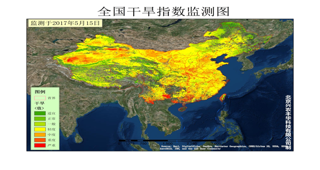 公司基于遥感数据分析技术中的“条件植被温度指数”进行区域内的干旱指数监测,为作物的干旱情况进行周期性监测,服务农业作物的干旱情况。