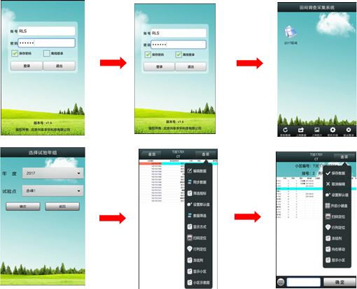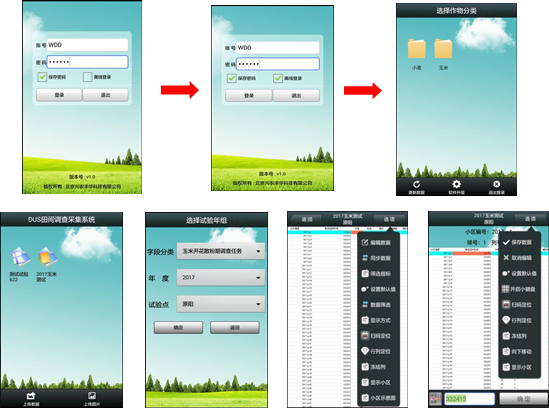 不同试验组下各试验点的采集人员可登录田间采集系统APP,接收指派给自己的该试验点的采集任务,进行采集并上传数据。