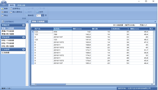 该系统具有独立的数据管理工具,对处理之后的数据可进行统一管理,并能实现数据查看、图片管理、数据查询以及数据导出等功能, 可在快速采集玉米穗部考种数据的同时保存果穗与籽粒图像以备追溯。