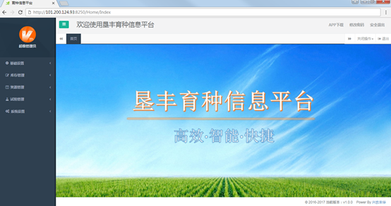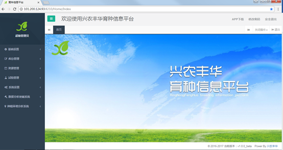 垦丰育种信息平台是北京兴农丰华科技有限公司为北大荒垦丰种业股份有限公司设计开发的育种信息平台,目前包括系统设置、 基础设置、资源管理、试验管理和库存管理五大模块,实现对企业对试验基础信息、种质资源信息、资源库存、试验方案、 田间数据采集和人员权限过程的管理。